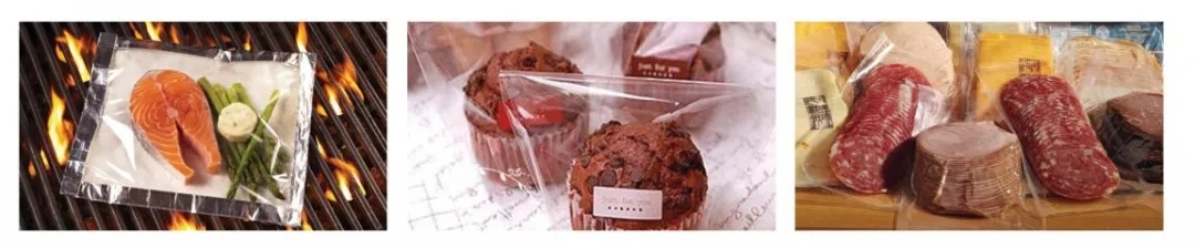 在市場上, ALOxPET產品的應用隨處可見:如金針菇、豆腐干、筍干、雞爪、熟肉、火鍋底料、牛肉干、火腿、魚干、堅果、養生五谷雜糧、寵物狗糧、薯片、玉米棒、面膜袋、果漿、辣條、面包、蛋糕、月餅等包裝。